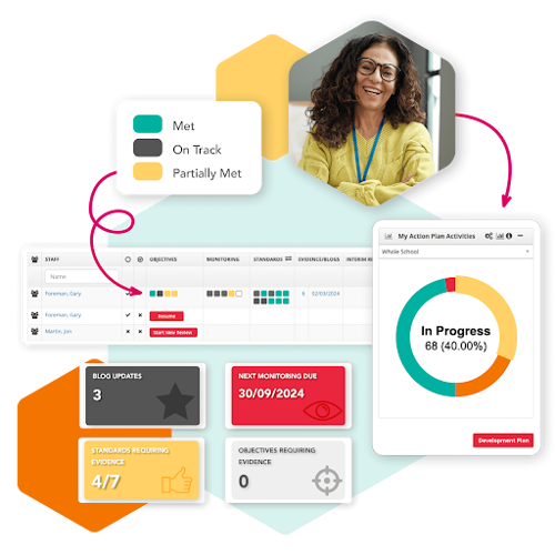 At the leadership level, SchooliP transforms individual progress into meaningful, school-wide insights. Dashboards display aggregated data from staff portfolios, providing a clear picture of departmental trends and whole-school performance. Senior leaders can monitor key performance indicators, track overdue actions, and ensure that school priorities remain on course. With a comprehensive view of progress across all levels, leadership teams can make informed, strategic decisions that drive continuous improvement.