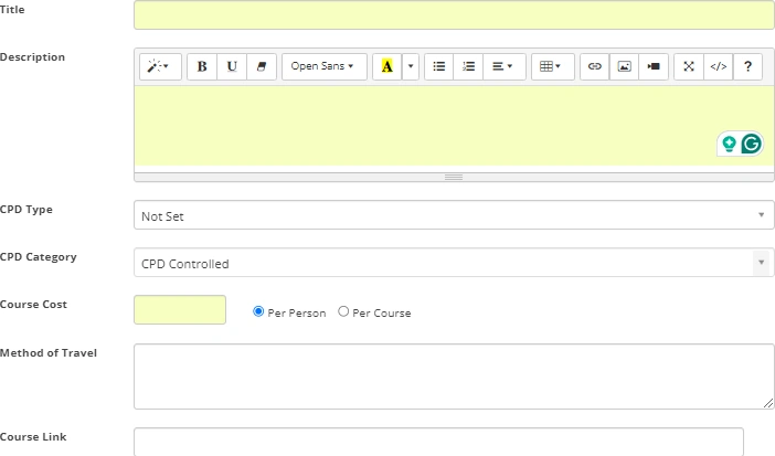 A Rich Text Editor has been added to the CPD Courses screen for the description to allow tables, image and links to be added.