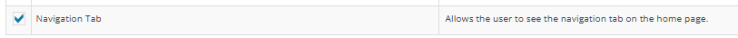 Here you will find the right to allow access to the Navigation Tab and you will need to tick the option 'Navigation Tab'