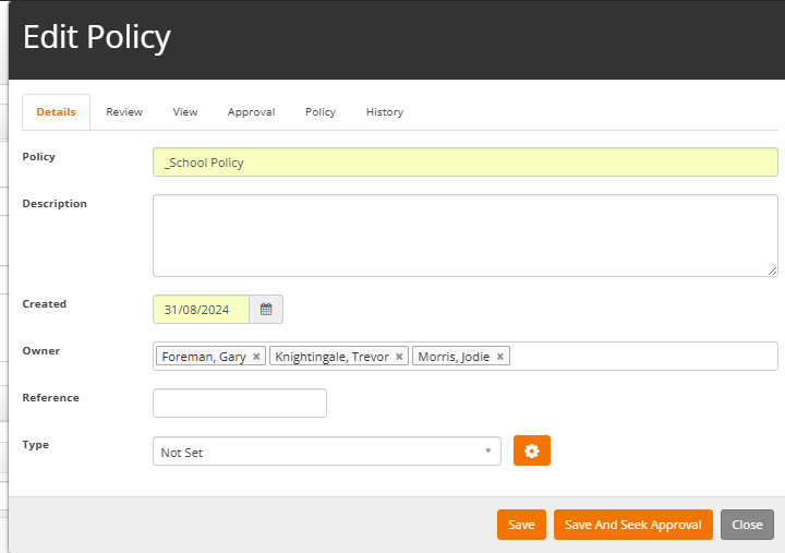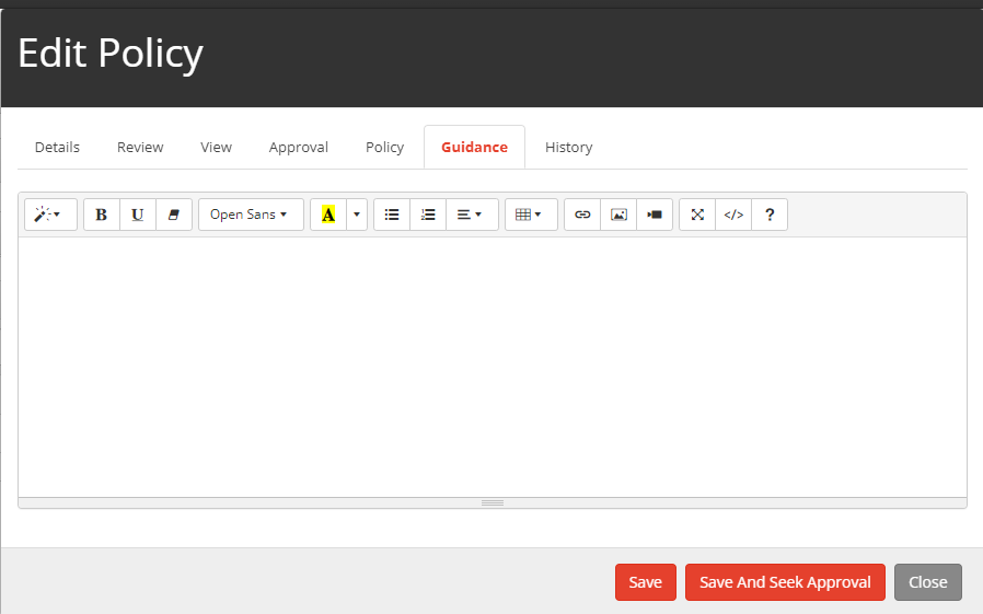 This will allow the administrator to write guidance on what the policy should contain and then this guidance is shown to the owner of the policy when adding/editing.