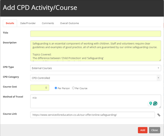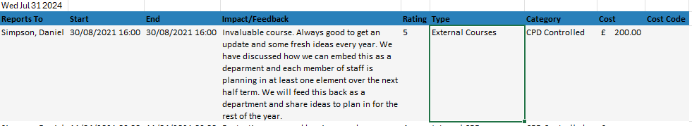 A CPD Coordinator can now change the CPD Category or Type for a staff member's CPD.