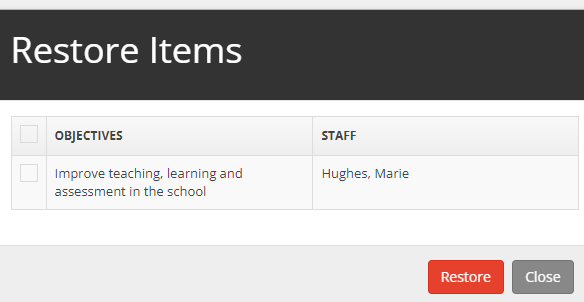 Selecting Close on the Objective screen will now ask the user to confirm the action if the system detects a change to the data to prevent the data from being lost by accident.