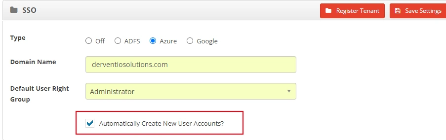 A new setting has been added for the Azure Sign-On settings screen to prevent the Single Sign-ON from creating new accounts.