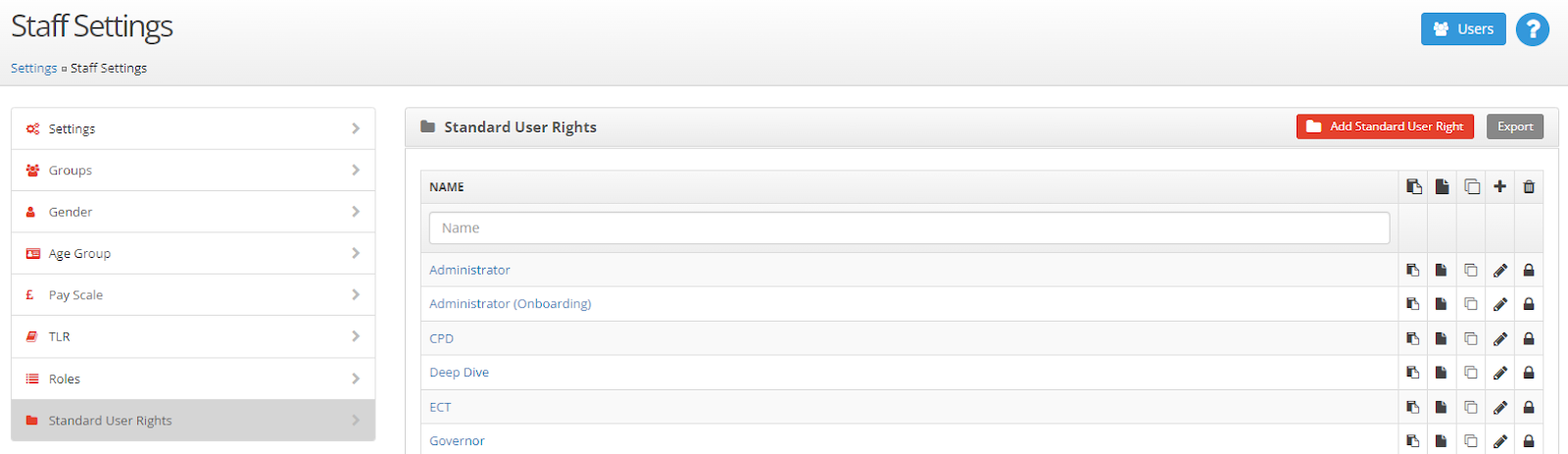 This right can be found in the Settings, Staff, Standard User Rights and then under the Users and Groups section.