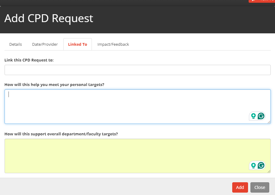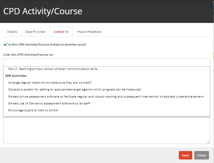 When adding or editing the CPD Course in the portfolio you can now use the link to tab to link the Improvement PLan Activities using the dropdown